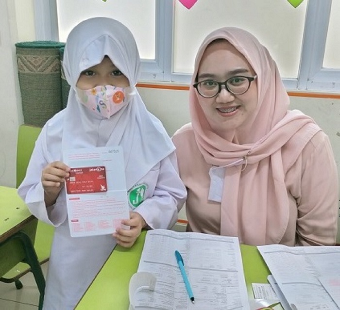 Pembagian Buku Tabungan Pelajar dan ATM Bank DKI Syariah Kepada Murid MI Al Muhajirien Jakapermai