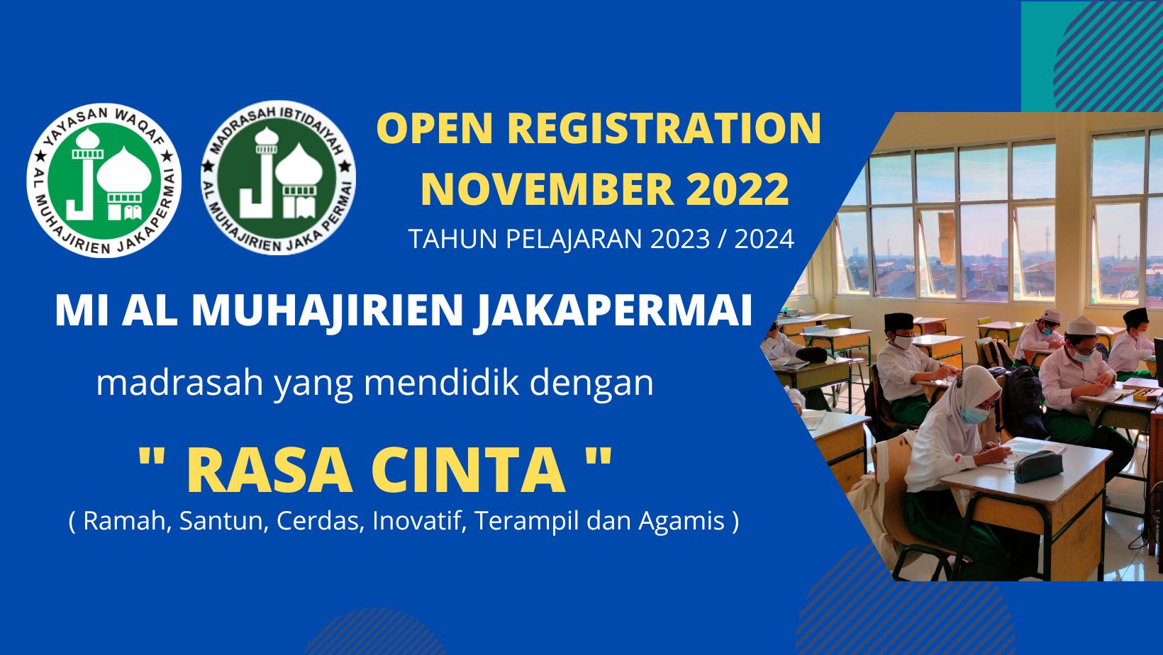Penerimaan Murid Baru MI Al Muhajirien Jakapermai Tahun Pelajaran 2023 / 2024 di Buka Mulai Bulan November 2022.